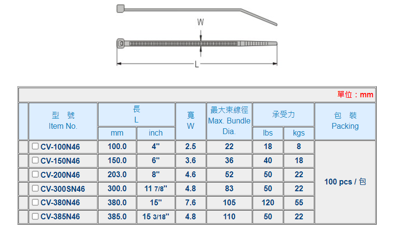 0301 KSS 耐熱尼龍紮線帶 Extra High Temperature Cable Tie 100 pcs / 包