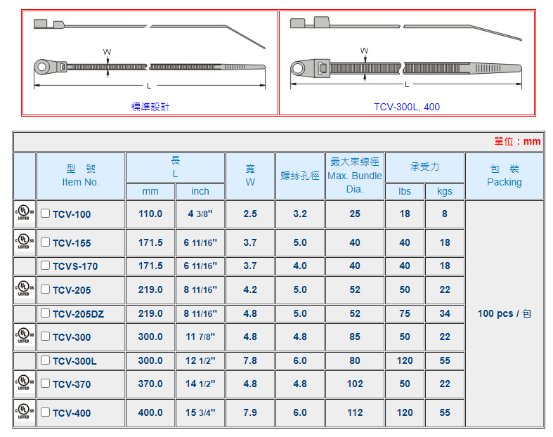 | 材質: | UL合格之NYLON 66(本色),防火等級94V-2。 |