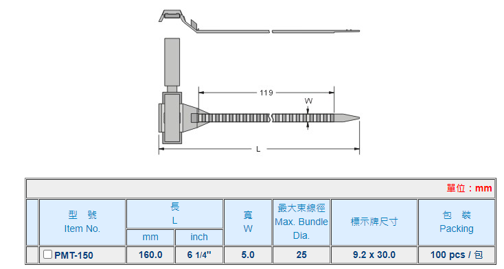 | 用法: | 可在空白紙片上書寫標誌記號,再將紙片放入紮線帶前端透明盒內即可。 |