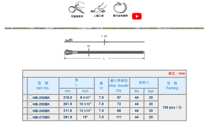 | 材質: | UL合格之NYLON 66,防火等級 94V-2。 |