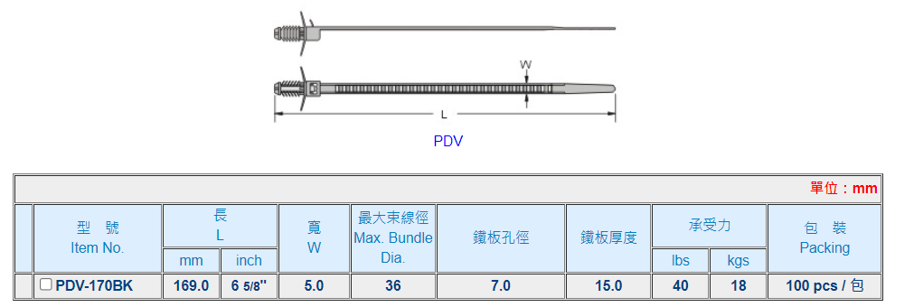 | 材質: | UL合格之NYLON 66,防火等級 94V-2。 |
