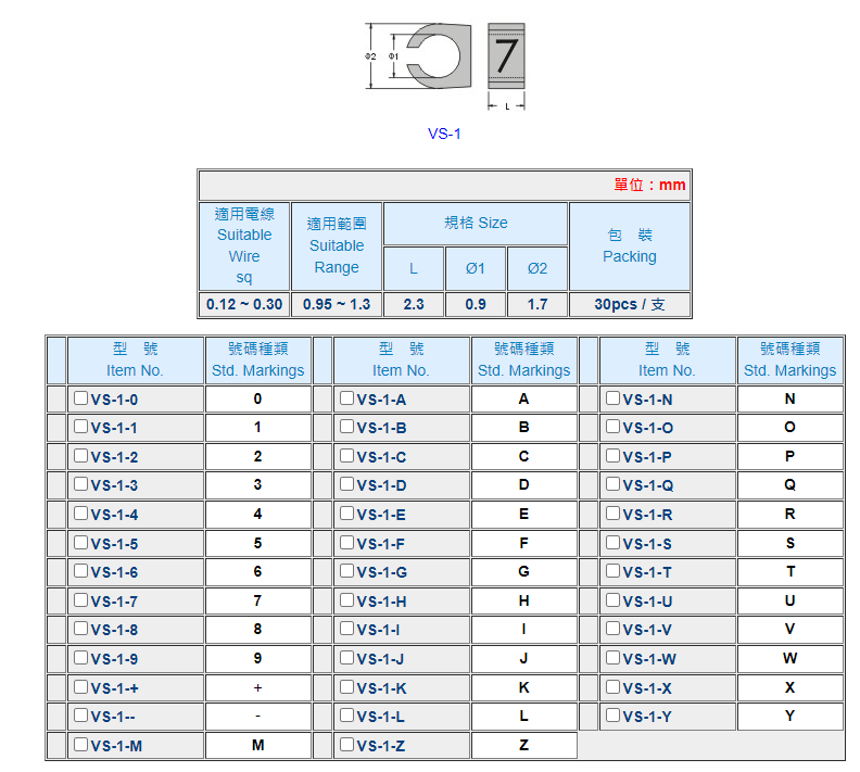 0220 KSS N型配線標誌 N Type Cable Marker VS-1