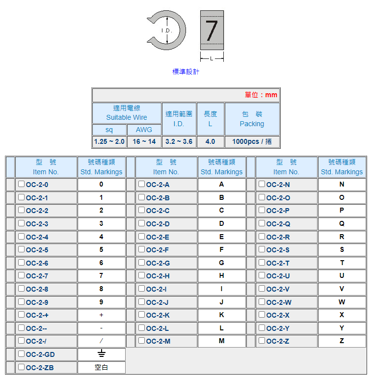 0225 KSS OC型配線標誌 OC Type Cable Marker OC-2
