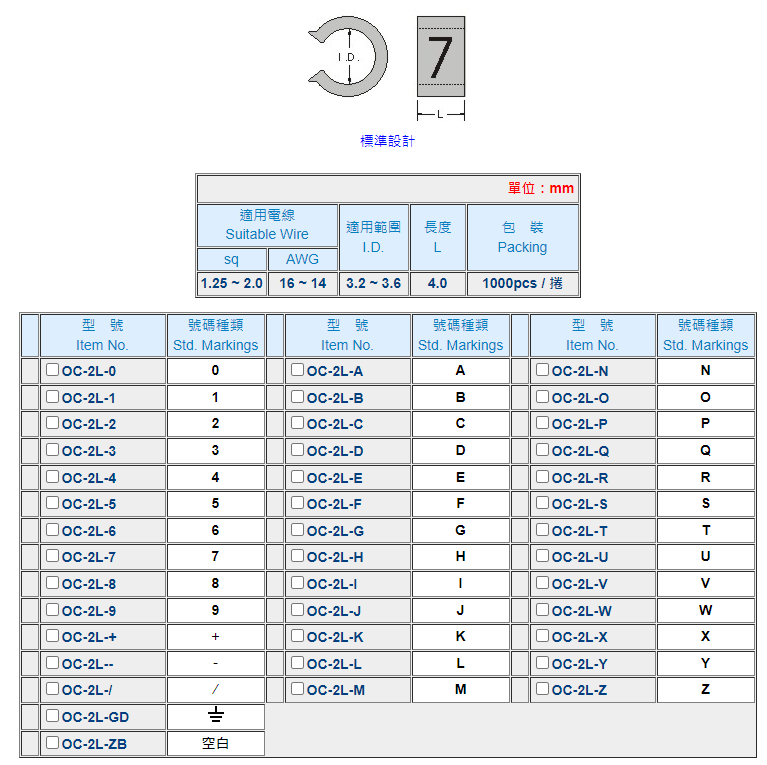 0225 KSS OC型配線標誌 OC Type Cable Marker OC-2L