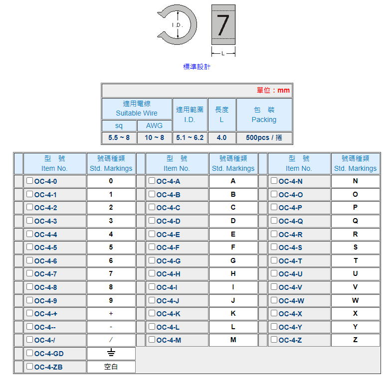 0225 KSS OC型配線標誌 OC Type Cable Marker OC-4