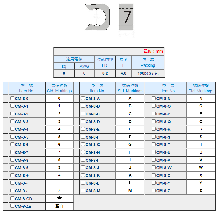 0230 KSS CM型配線標誌 CM Type Cable Marker CM-8
