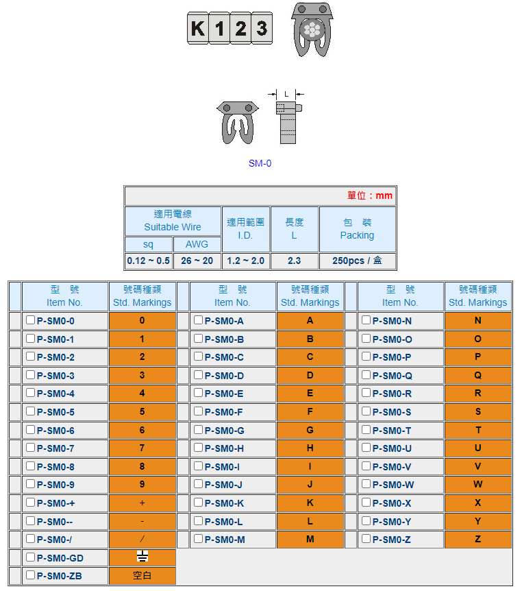 0236 KSS SM型配線標誌 SM Type Cable Marker P-SM0