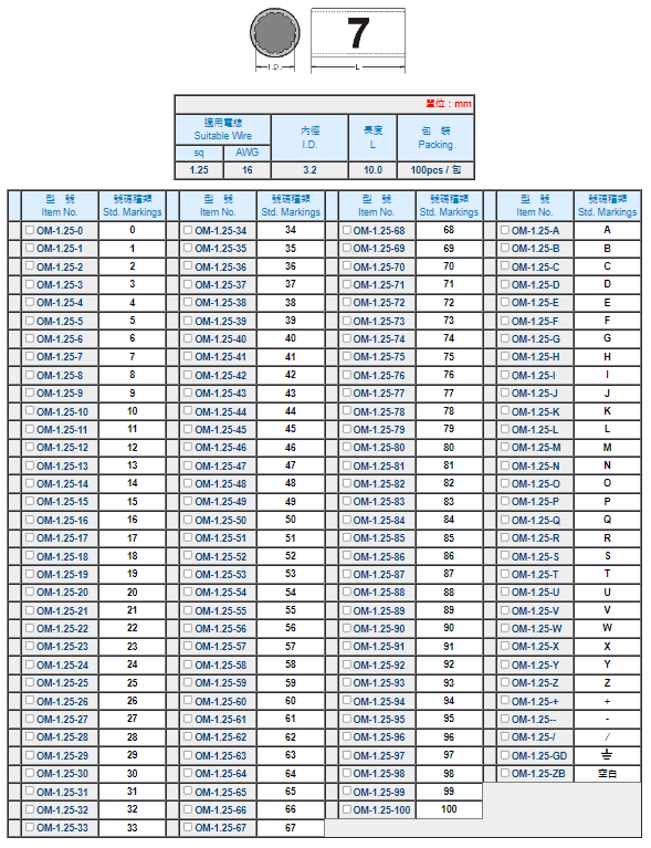 0205 KSS O型配線標誌 O Type Cable Marker OM-1.25