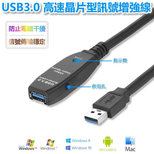 1. 主動式 USB 3.0 訊號延長線