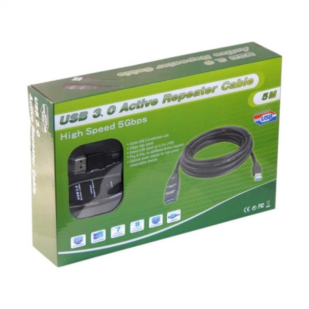 本產品長度為5米,利用訊號增強晶片,最長可再串接5M傳輸線,完全顛覆市場USB3.0只能到3米的限制。