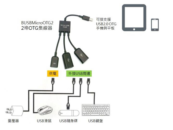連接耗電量較大的外接裝置,手機或平板提供的電量滿足不了時,接上USB額外供電可以確保OTG正常工作