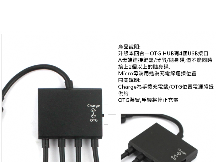 2、開關在OTG位置時獨立供電給連接的裝置使用切換到Charge位置停止OTG功能,轉給手機充電 。