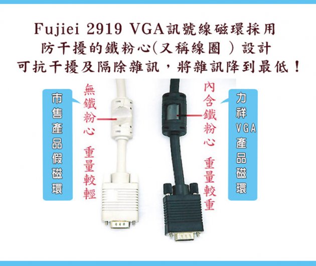 4 線芯採用3根視訊同軸線和9根信號線的VGA高標準結構,同時採用高 純度無氧鍍錫銅增加信號傳輸面,抗氧化,使用壽命高於普通產品50倍