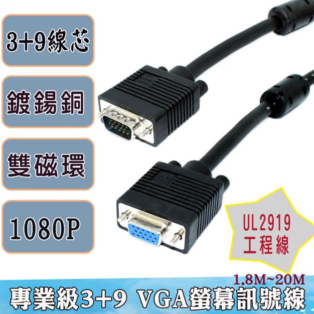 主用於加長顯示器(D-SUB/15孔介面)和顯示卡(D-SUB/15孔介面)的連線