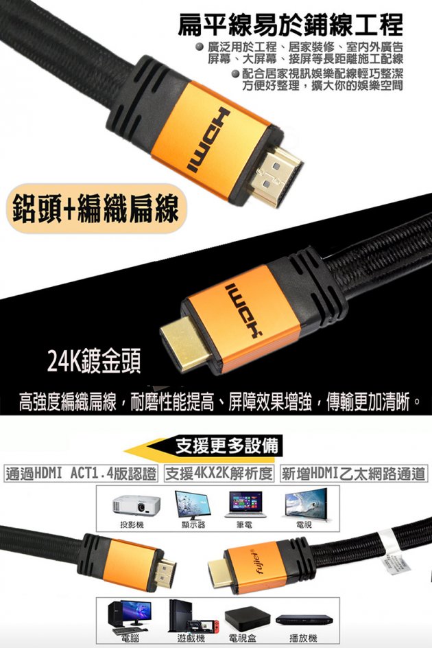 ◎24K鍍金.高純度無氧: 24K鍍金高純度無氧銅/鋁頭+編織線材/支援HDMI 3D功能/支援HDTV分辨率,1080p解晰度。