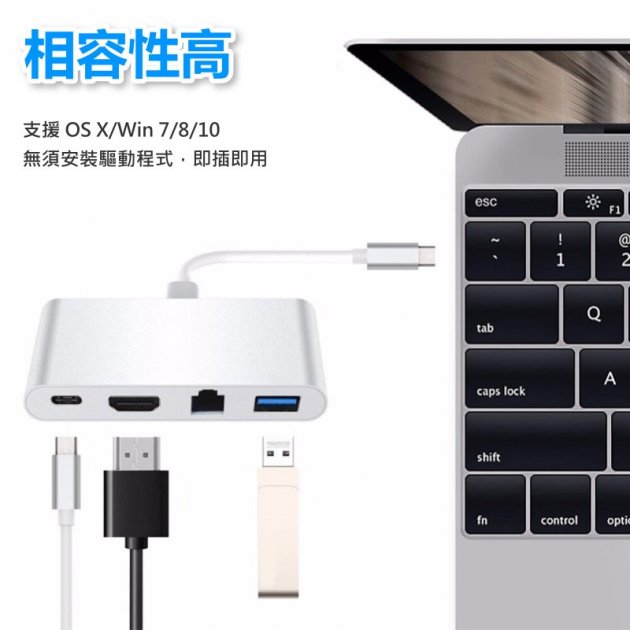USB Type-C 透過轉換器可支援高達1080p 60Hz或4K(3840x2160)30Hz的顯示解析度。並可向下相容支援