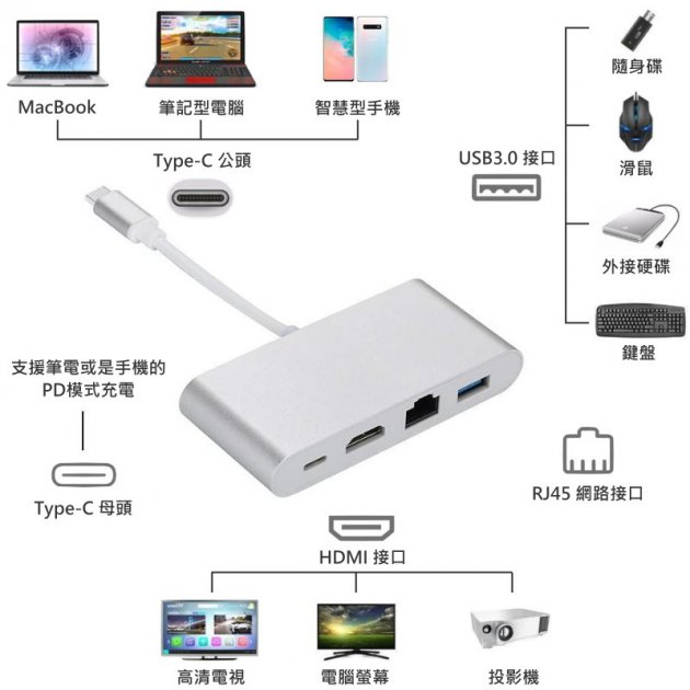 裝置需支援 DP Alt Mode (DisplayPort Alternate Mode) ,才能實現PD充電與影音傳輸功能