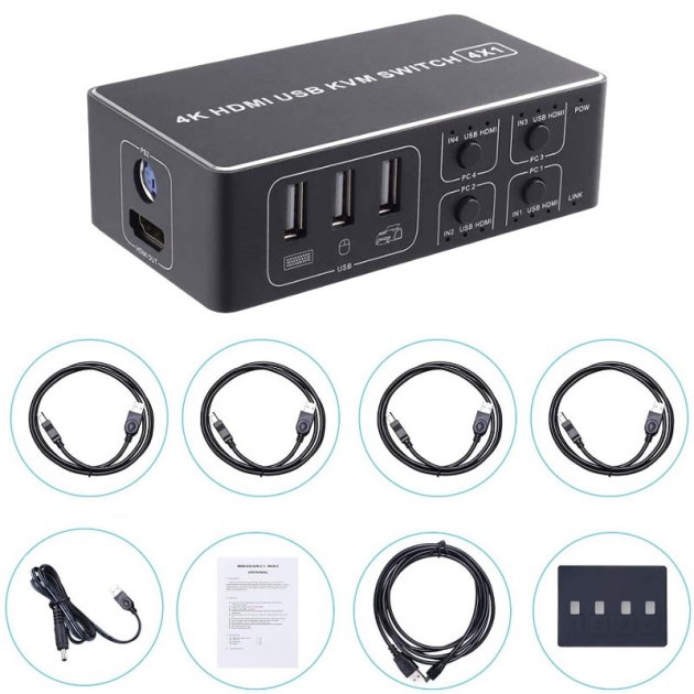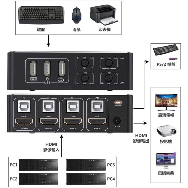 DA-88-4 4K HDMI USB KVM 4對1 切換器