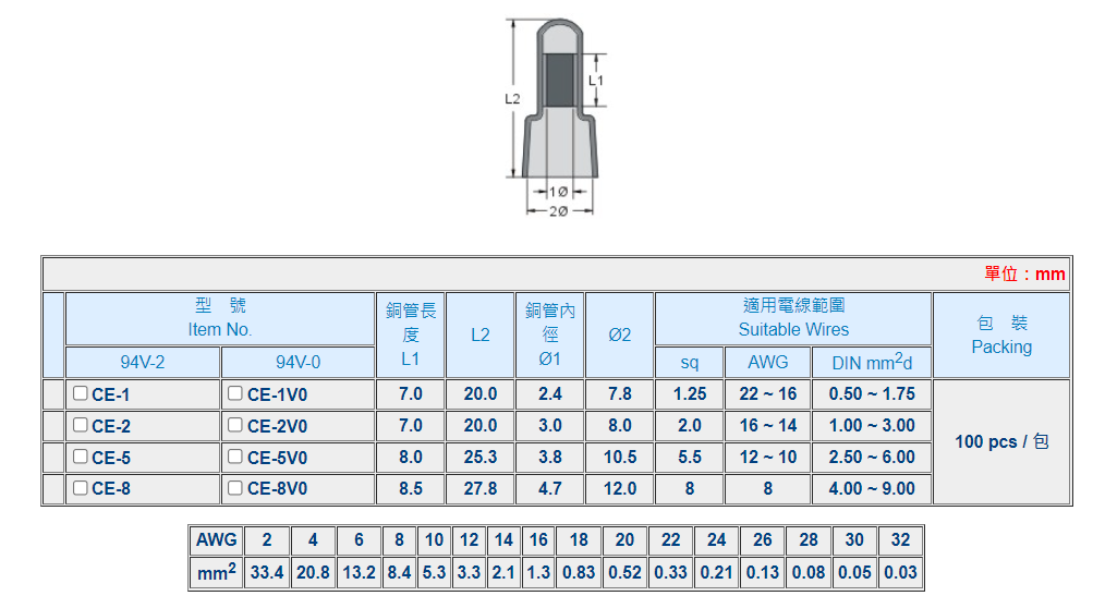 | 用 途: | KSS閉端端子適用於電機、電器製品中電線接點用。 | |