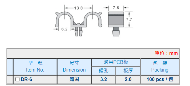 | 材質: | UL合格之NYLON 66(本色),防火等級 94V-2。 |