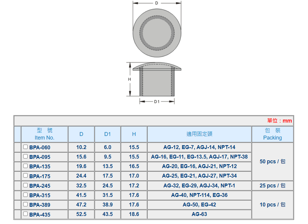 | 用途: | 各式設備搭配電纜固定頭使用時,在未配線時,可先安裝內塞塞棒,以免塵、水滲入。 |